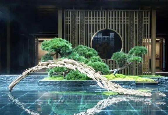 比如燈光與水的互動水簾裝置
