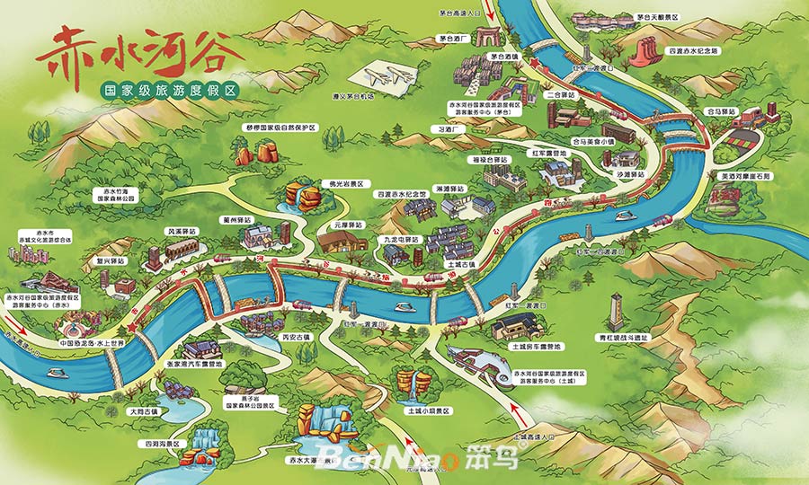 怎樣規(guī)劃游玩路線更方便?……如果有一份地圖在手,這些問題就能通解決了。我們來看一份赤水河谷國家級旅游度假區(qū)手繪地圖,手把手帶你游赤水河谷!