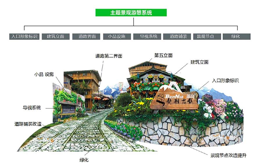 融合:維護古鎮(zhèn)盛水相應(yīng)的傳統(tǒng)風(fēng)貌,標(biāo)識融入環(huán)境;