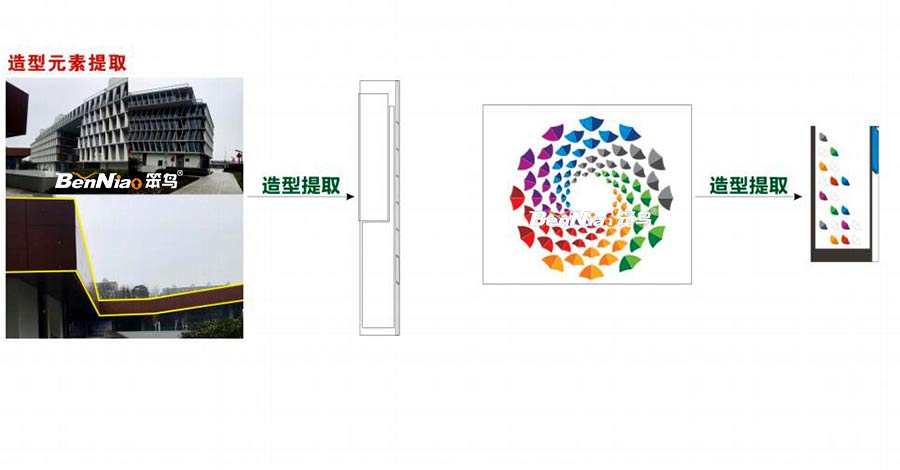 在標識設(shè)計造型的提取上,主要根據(jù)項目特點以及項目環(huán)境建筑特色,從而提取設(shè)計元素,使標識真正做到融入環(huán)境,營造和諧。