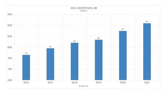 根據(jù)教育部官方統(tǒng)計(jì),2021年的高校應(yīng)屆畢業(yè)生人數(shù)再創(chuàng)新高,達(dá)到了909萬人;同時(shí),今年1078萬考生參加全國高考,人數(shù)創(chuàng)自1977年恢復(fù)高考以來歷史新高。