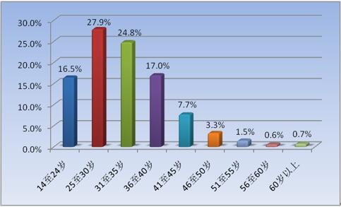 同程旅游網(wǎng)2015年旅游數(shù)據(jù)顯示,游客年齡分布前四位分別是:25-30歲,占比27.9%;31-35歲,占比24.8%;36-40歲,占比17%;14-24歲,占比16.5%??傮w來看,我國游客以80后、90后為主。