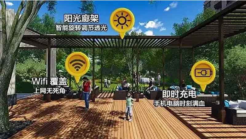 目前智慧技術(shù)應(yīng)用在景區(qū)建設(shè)中主要表現(xiàn)在四個方面:一是景觀設(shè)施使用、運(yùn)行等控制的自動化與智能化;二是景觀設(shè)施對公園環(huán)境指標(biāo)與使用者的感知與記憶性;三是景觀設(shè)施對感知信息的自我處理與自動反饋;四是景觀設(shè)施與使用者的交互性、體驗(yàn)性與沉浸性。如導(dǎo)覽設(shè)施、休憩設(shè)施、衛(wèi)生設(shè)施、照明設(shè)施、娛樂設(shè)施、管理設(shè)施、養(yǎng)護(hù)設(shè)施等都離不開智慧技術(shù)的融入和體現(xiàn)。