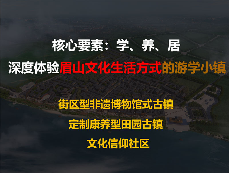 項(xiàng)目定位:文旅度假生態(tài)綜合體、眉山深綠型設(shè)區(qū)、眉山夜間經(jīng)濟(jì)示范點(diǎn)