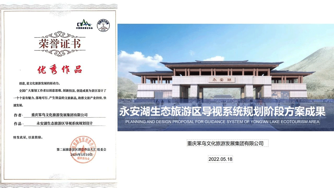 《永安湖生態(tài)旅游區(qū)導(dǎo)視系統(tǒng)規(guī)劃設(shè)計(jì)》、《中國(guó)恐龍島.水上世界標(biāo)識(shí)系統(tǒng)》、《重慶云陽龍缸景區(qū)景區(qū)標(biāo)識(shí)系統(tǒng)設(shè)計(jì)》榮獲本次活動(dòng)優(yōu)秀作品獎(jiǎng)!案例中充分結(jié)合景區(qū)特點(diǎn),通過新興的技術(shù)、符合時(shí)代審美的形式滿足目標(biāo)群體的需求,完善景區(qū)內(nèi)部服務(wù)。
