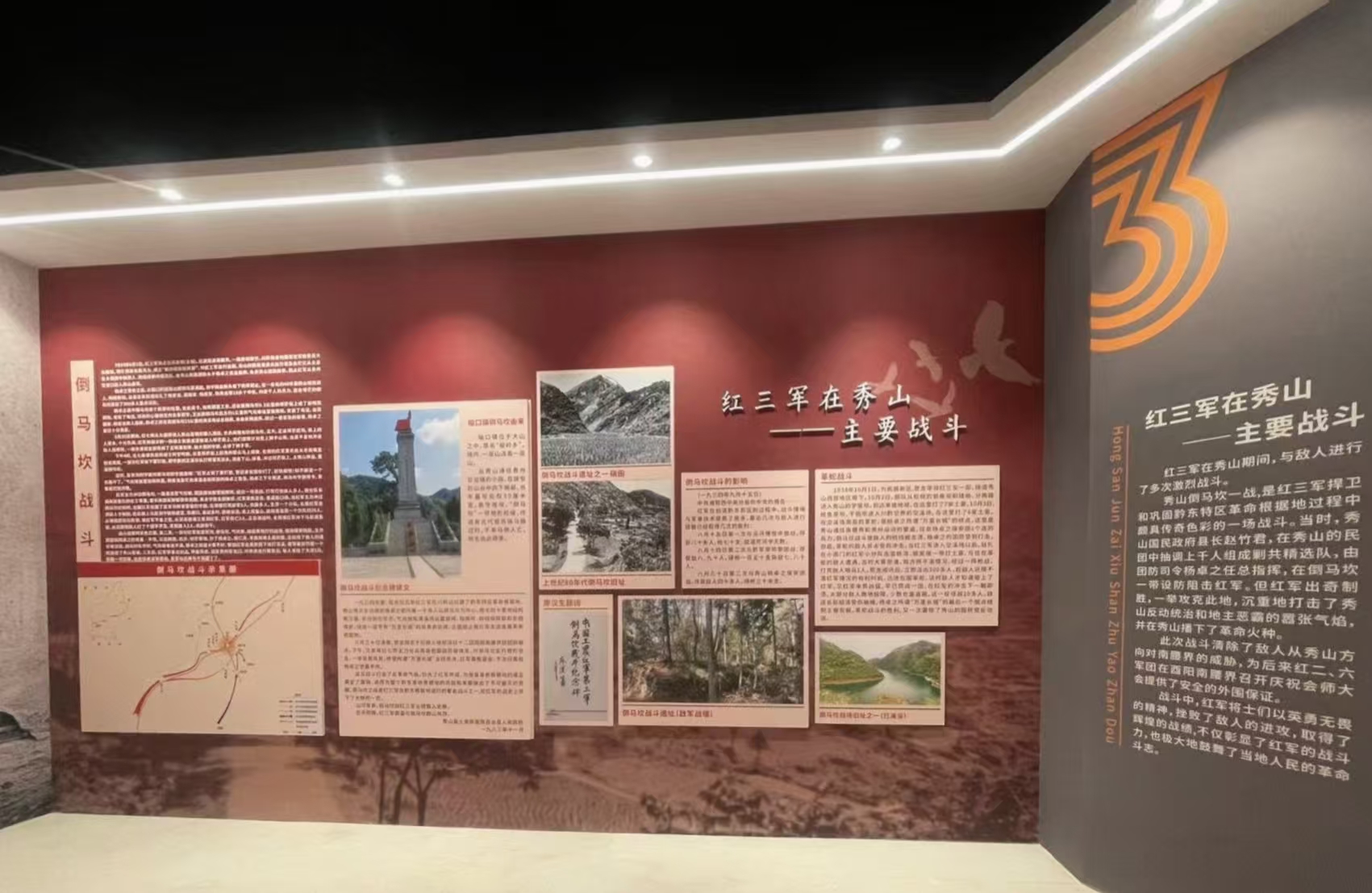 通過不斷的走訪與文旅委及政府相關(guān)文史工作者的交流,相關(guān)文獻資料的解讀,最終確定了壩芒紅色文化十大板塊內(nèi)容,結(jié)合前言與結(jié)語,分區(qū)塊呈現(xiàn),將壩芒紅色文化脈絡(luò)從背景到戰(zhàn)斗過程及主要人、物和后續(xù)發(fā)展娓娓道來。給人以系統(tǒng)化的文化呈現(xiàn),講述壩芒故事。