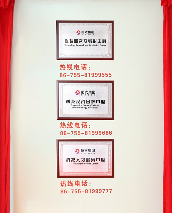 恒大還現(xiàn)場公布了三大中心的全球熱線電話,分別是科技研究及孵化中心 86-755-81999555、科技投資合作中心 86-755-81999666、科技人才服務中心 86-755-81999777。另外恒大高科技產(chǎn)業(yè)郵箱為tech@evergrande.com。