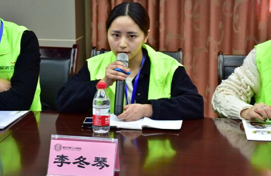 李冬琴副部長(zhǎng)介紹完雙方合作事項(xiàng)后,大愛(ài)清塵的工作人員為我院五名救助志愿者佩戴大愛(ài)清塵徽章,并向我院正式授牌。