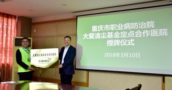 3月10日上午,在我院綜合樓會(huì)議室隆重舉行“大愛(ài)清塵基金定點(diǎn)合作醫(yī)院”授牌儀式。參加儀式的有:大愛(ài)清塵基金重慶工作區(qū)主任甘華軍、救援部副部長(zhǎng)李冬琴及重慶市工作區(qū)的工作人員;我院副院長(zhǎng)賴(lài)曉東、職業(yè)衛(wèi)生與中毒應(yīng)急辦公室主任王世松、醫(yī)務(wù)部主任劉星和、護(hù)理部主任龐燕、職業(yè)病科主任王永義、實(shí)驗(yàn)醫(yī)學(xué)中心主任許商成、我院大愛(ài)清塵志愿者及職業(yè)病科醫(yī)護(hù)人員代表等,共計(jì)30余人。儀式由王世松主持。