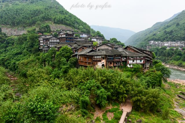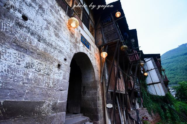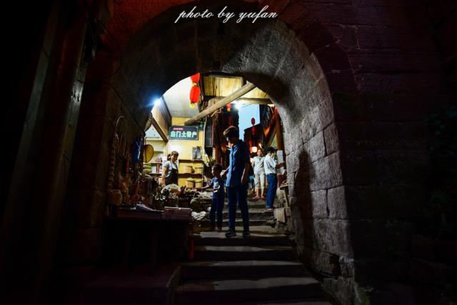 兩座門均為拱形石門,出寨門向西下坡是一條長長的石梯,呈階梯型向下延伸通向古碼頭,城墻上建滿了西南地區(qū)較為普遍的吊腳樓。