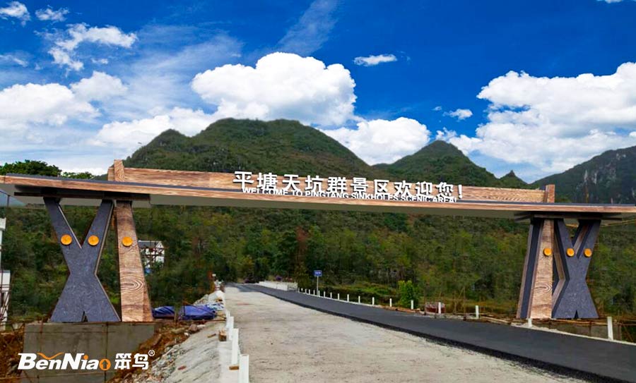 天坑群景區(qū)積極響應(yīng)全域旅游相關(guān)政策,給游客帶來(lái)更優(yōu)質(zhì)的服務(wù),景區(qū)從新升級(jí)打造,笨鳥有幸參與此次景區(qū)升級(jí)打造的大門設(shè)計(jì)與制作。我司設(shè)計(jì)團(tuán)隊(duì)于2017年8月開始多次對(duì)天坑群景區(qū)進(jìn)行實(shí)地勘測(cè)、走訪。結(jié)合景區(qū)現(xiàn)場(chǎng)地質(zhì)風(fēng)貌、民族文化、當(dāng)?shù)靥厣认嘟Y(jié)合,對(duì)天坑群景區(qū)大門及標(biāo)識(shí)導(dǎo)視系統(tǒng)進(jìn)行了初步設(shè)計(jì)。分享如下: