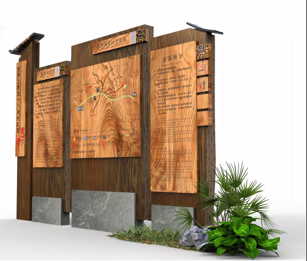 景區(qū)的標識標牌主要分為導覽全景圖、導覽圖、方向標識牌、景物介紹牌、提示牌與警示標牌、服務設施名稱等。景區(qū)需要保證全景圖、方向標識牌、提示牌與警示標牌、服務設施名稱等這些基本類型齊全。