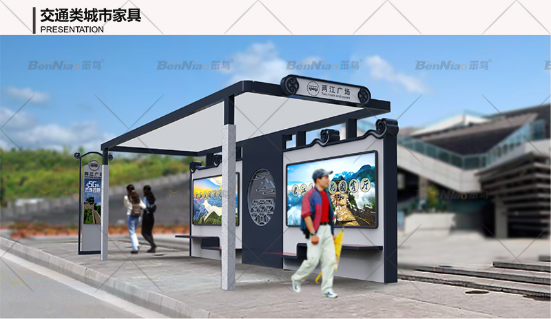 在城市化的進(jìn)程中人們出行主要依靠公共交通工具,公共交通工具儼然成為城市一道亮麗的風(fēng)景線,在人們的生活中占據(jù)重要的地位,對于交通行業(yè)的發(fā)展起著十分重要的作作用,基于云陽的現(xiàn)狀和未來的發(fā)展,也為云陽縣城區(qū)規(guī)劃設(shè)計(jì)了公交站臺。