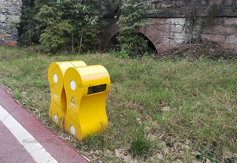 設(shè)計垃圾桶時要考慮到方便使用,垃圾桶的結(jié)構(gòu)設(shè)計要遵循方便使用的原則。景區(qū)垃圾桶要設(shè)置內(nèi)、外兩個桶,內(nèi)桶用來裝垃圾,外桶上設(shè)置較為隱蔽的暗門,方便工作人員取出內(nèi)桶。