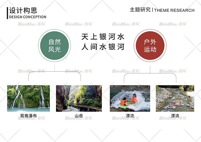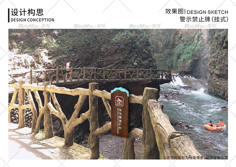 笨鳥文旅為助力水銀河景區(qū)創(chuàng)AAAA,從景區(qū)導(dǎo)視著手,在整體標識導(dǎo)視系統(tǒng)設(shè)計上,主要是依據(jù)自然風光、戶外運動、山岳、漂流、峽谷等為設(shè)計構(gòu)思,表達生態(tài)保護、融入環(huán)境的宗旨,充分體現(xiàn)自然、野趣、奧秘之特色。透過眼前的現(xiàn)象,借景相融呈現(xiàn)水銀河大峽谷之美。