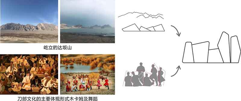 這里是刀郎文化的發(fā)源地,無數(shù)刀郎人留下了反抗壓迫,爭取自由幸福的信念,成為了圖木舒克市民族和文化的重要特色。通過刀郎文化與豐富的自然資源進(jìn)行導(dǎo)視設(shè)計(jì)的有機(jī)融合,讓導(dǎo)視系統(tǒng)在滿足信息功能的同時(shí),強(qiáng)化其視覺性及景觀性。
